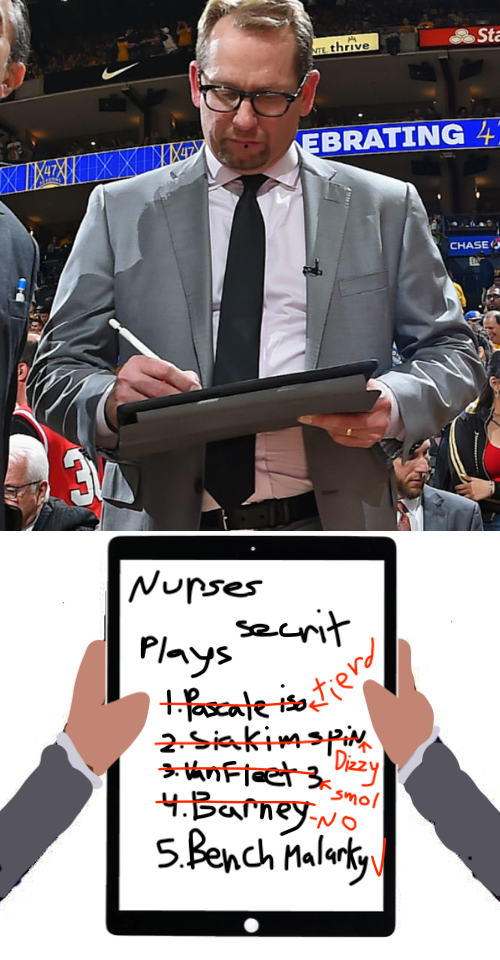 Nurse is a really great coach, but he falls into the same traps that other great coaches do. When they’re successful with a play, they stick to it, when a player bails them out, they stick to them. It’s why even coaches like Pop struggle. He had major issues with his offensive sets with DeMar and LMA.