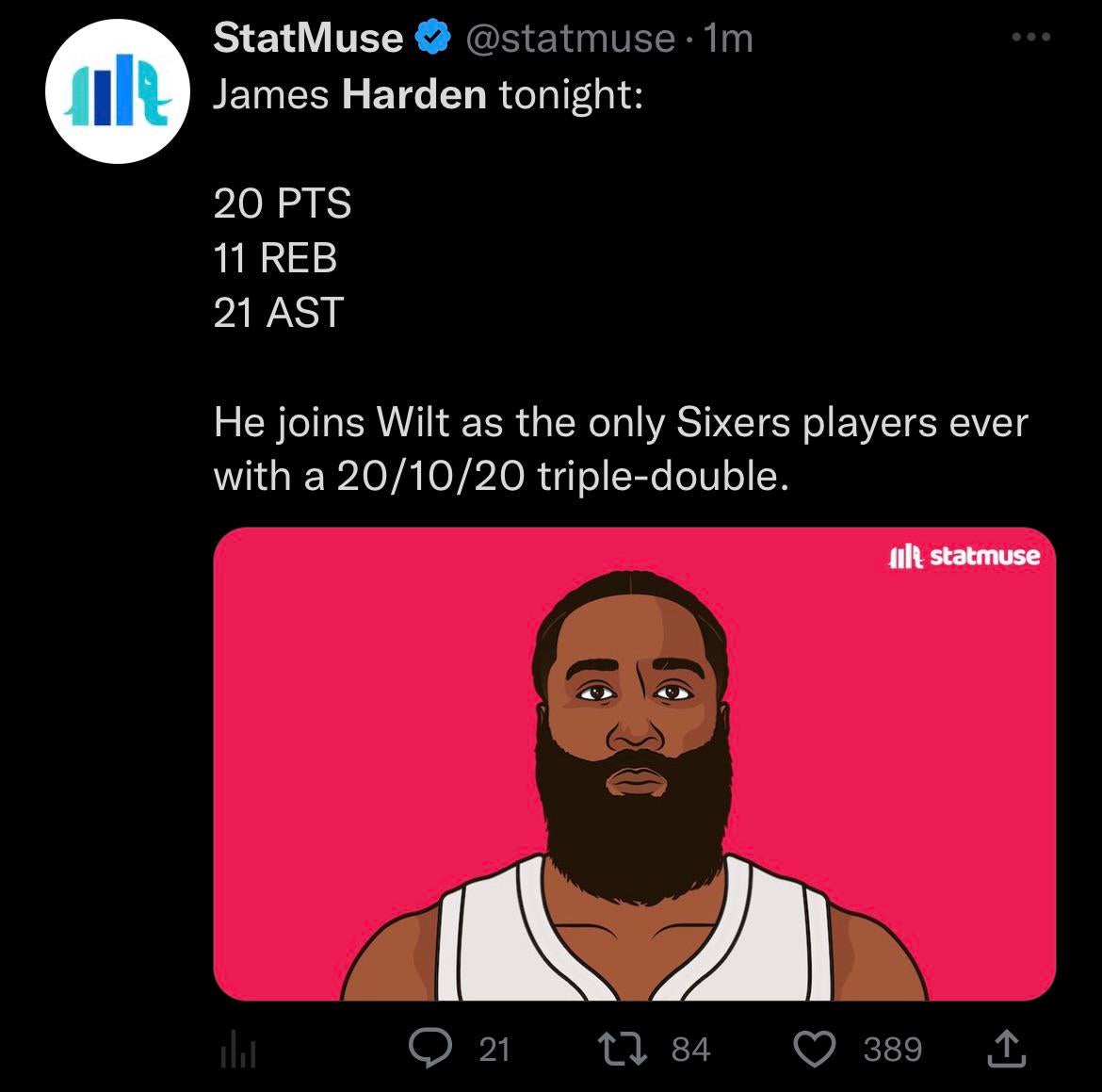 mike35745 3 years ago Ben had 4 years to achieve this. James did in in 10 months as a Sixer. Thank you Brooklyn. Praise the Beard 🙏🏻