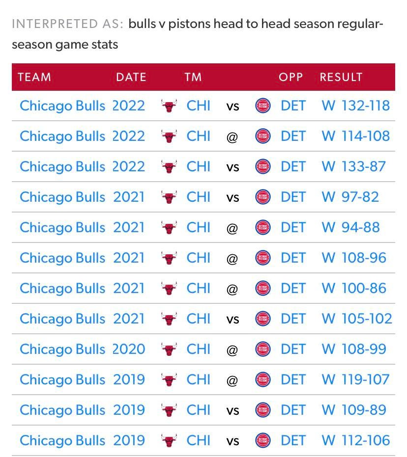 Aware_Library2718 3 years ago Funny enough, the Pistons won the 7 previous matchups previous to our 12 win streak