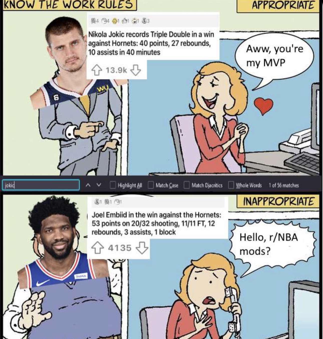 Don’t let /r nba in your head. No one cares. Also Jokic’s stat line is fucking insane in this example. 27 rebounds??