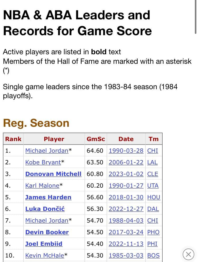 last night Donovan Mitchell had statistically the 3rd greatest individual game. EVER. by Candygramman Central DivisionCleveland CavaliersEastern Conference Prev Post Raptors-Pacers Recap! Scottie’s Progression At Center | The Raptors Show With Will Lou – January 03 January 3, 2023 Next Post “Umm, actually we shouldn’t get Donovan Mitchell because his defence is bad and he will ruin our system” – How most of you guys sounded last summer saying we don’t need Mitchell January 3, 2023 3 Comments SlovakThor 3 years ago Game score doesn’t go past the 1983 season nickyv23 3 years ago The crazy thing is that we’ve seen three of the top 10 all-time game scores this season alone.What a great time to be a basketball fan. CruffTheMagicDragon 3 years ago Are these only for regular season? Would expect LeBron to be on here for playoff gamesWrite A CommentYou must be logged in to post a comment.
