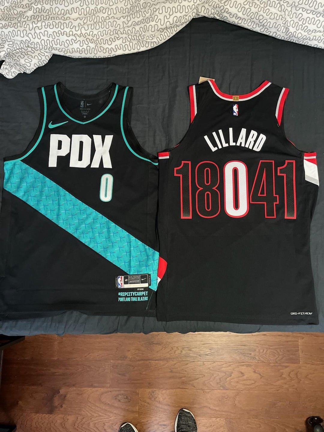 Was able to snag one of the 10 made (and 9 sold) commemorative Lillard home jerseys. Heres what it looks like! Unfortunately was unable to get one of the 9 sold Away jerseys but am willing to pay big bucks for it if you or someone you know snagged it.