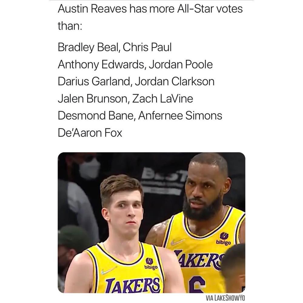People complain about small markets yet Lauri has more votes than those listed. Reaves been balling out and our fans love him