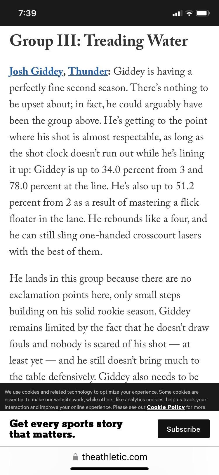 This mother fucker puts Giddey in the treading water category because his improvements are apparently too steady with no exclamation points yet he puts Scott Barnes, Mobley and Green in the top category for reasons