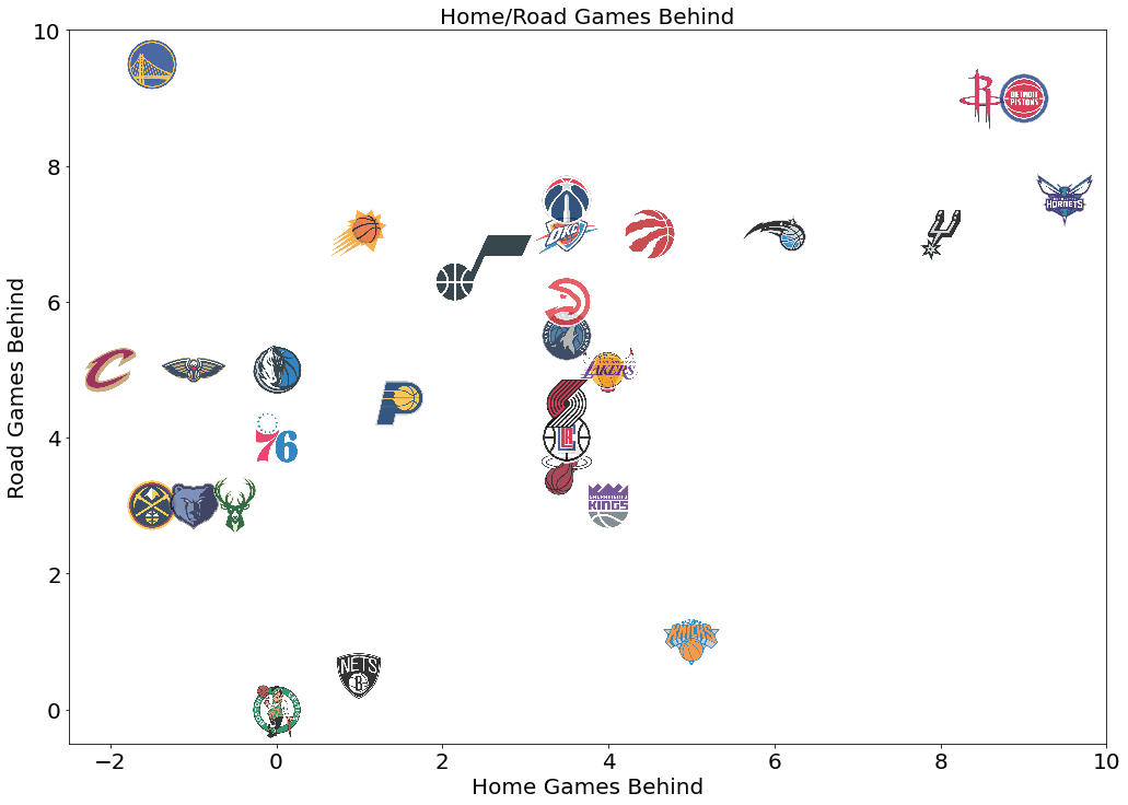 Nets and Nuggets both 1.5 games behind the C’s, but in different ways: Nuggets taking care of home, Nets balanced home/away. Knicks look awful at home, dangerous away.