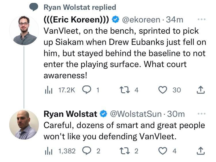 The worst to me is still the Lewenberg tweet when he said 4/5 starters are playing well, that game FVV legitimately had a horrible game (he shot 3 – 15 from the field and 3-12 from 3)