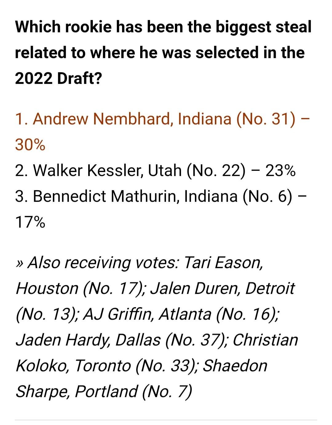 I don’t understand how Mathurin is considered a steal, but I like seeing our young guns get voted for stuff!