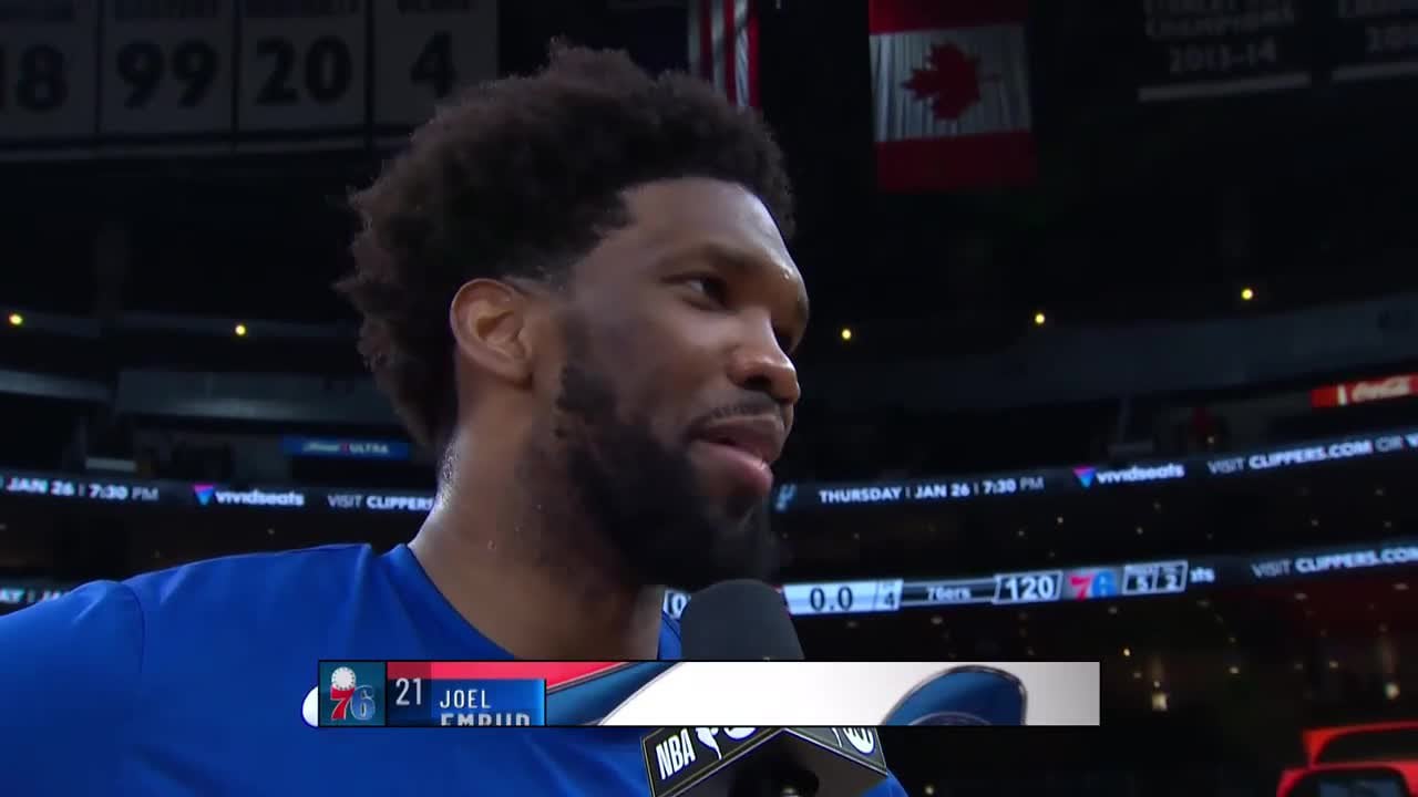 Embiid gets asked about being undefeated in LA, immediately mentions the same thing is true for the Bulls and Knicks