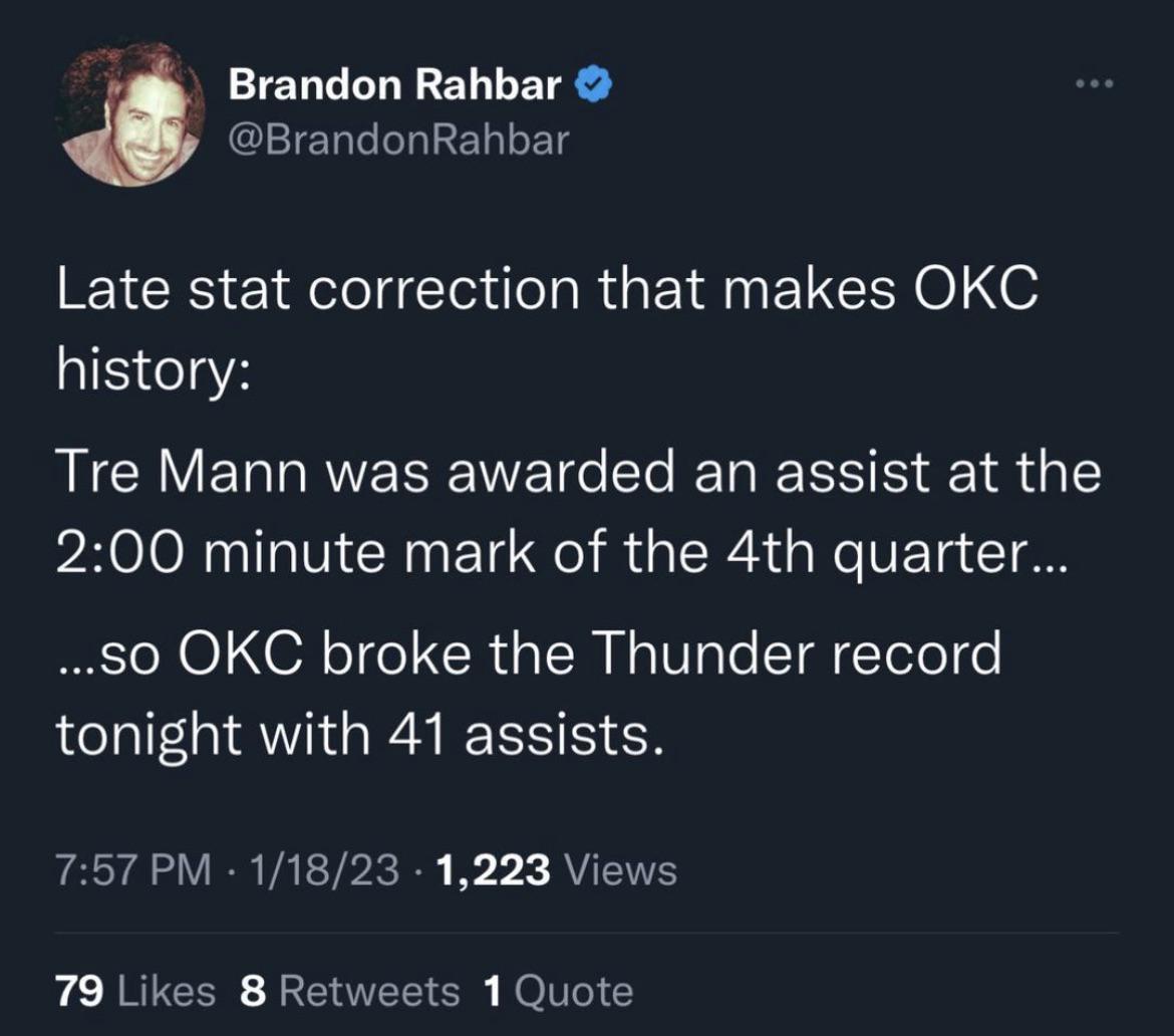 I love this team by _bbuckley_ Northwest DivisionOklahoma City ThunderWestern Conference Prev Post 2023 Dallas Mavericks January 19, 2023 Next Post Coldest Street-Ball Moments ! January 19, 2023 5 Comments rabidbot 3 years ago Most fun I’ve had watching the team since like 2012. SaltySinclair 3 years ago Nice Farlaign 3 years ago Did you see the play? It shouldn’t have been an assist. Feels a bit like home stat padding lol. That been said, what a fun team to watch. teddybendherass 3 years ago We’ve broken our franchise scoring and assist records in the span of a month. We’re on a string 1 through 17. Archeign 3 years ago Team……..basketball Write A CommentYou must be logged in to post a comment.