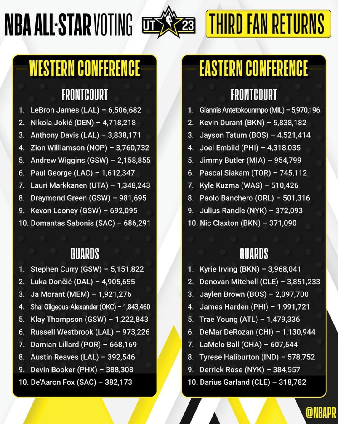Giannis Antetokounmpo has taken the Eastern Conference lead in the third fan returns of #NBAAllStar Voting.
