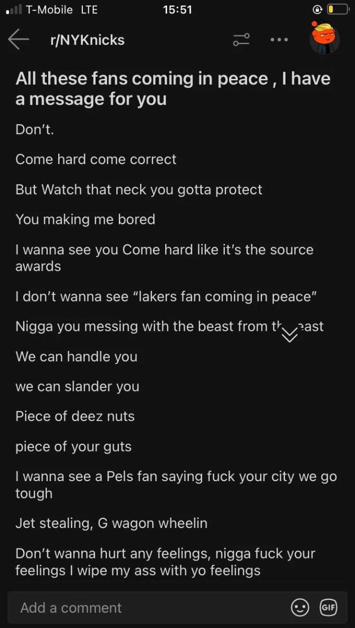 ngl i hated seeing “lakers fan coming in peace” and still do lol