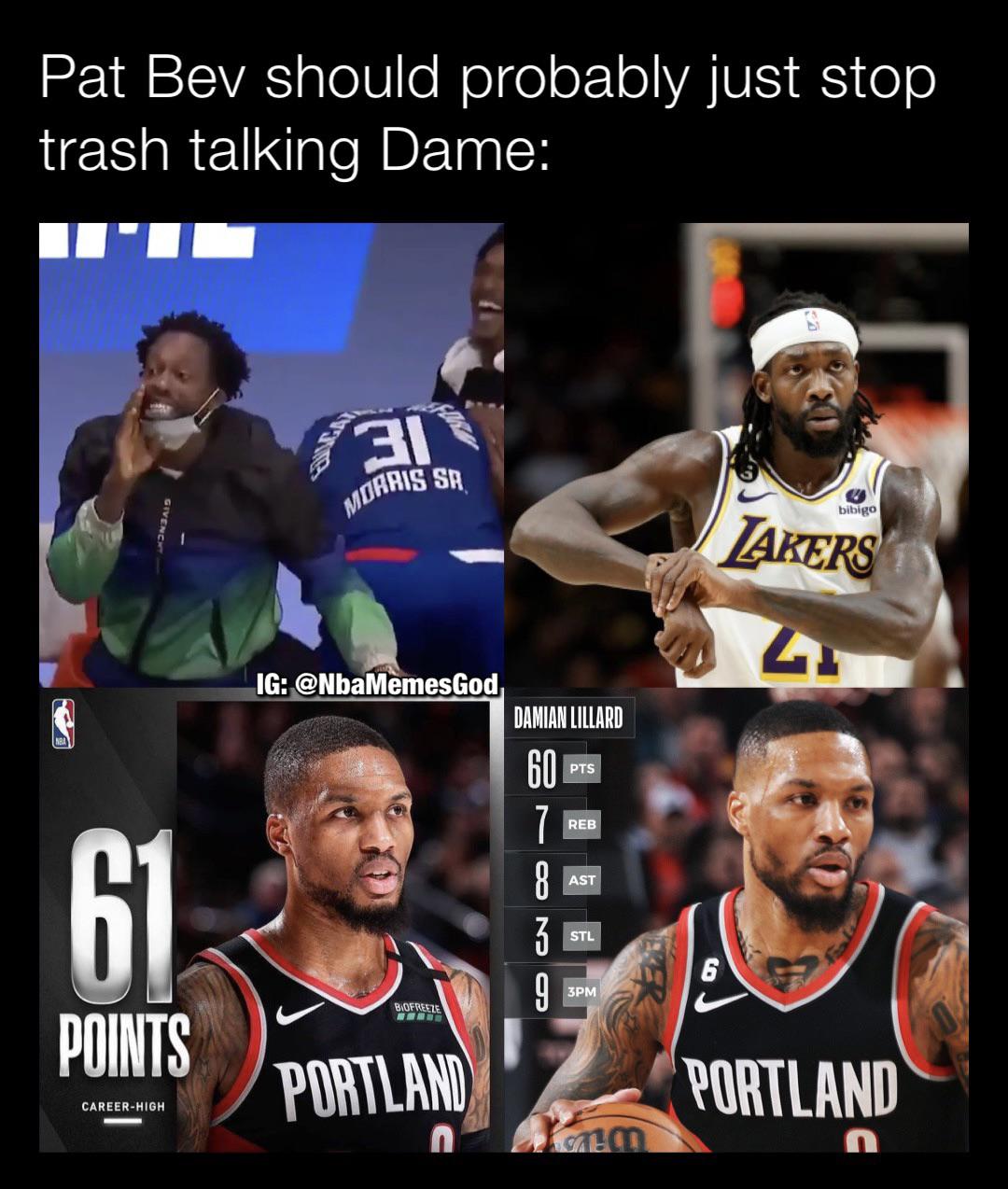 Blazers should actually sign Pat Bev on the condition that he talk trash to Dame constantly.