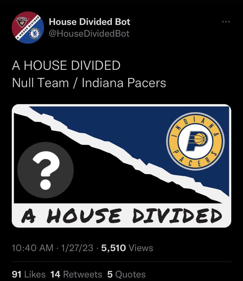 All my homies hate Null team.by gtkaiboi99 Central DivisionEastern ConferenceIndiana Pacers Prev Post Knicks Rumors Are HOT: New York Offered BLOCKBUSTER Deal For OG Anunoby + Kyle Kuzma Trade Rumors January 27, 2023 Next Post Houston Rockets Rumored Trade Interest In Atlanta Hawks Big John Collins + Takeaways From Cavs Loss January 27, 2023 4 Comments thedirte- 3 years ago Would be pissed if they traded Miles to Null team. sgeswein 3 years ago Falsy bastards. TurkishDonkeyKong 3 years ago They took tj leaf ManOfQuality 3 years ago Pacers biggest rival – apathyWrite A CommentYou must be logged in to post a comment.