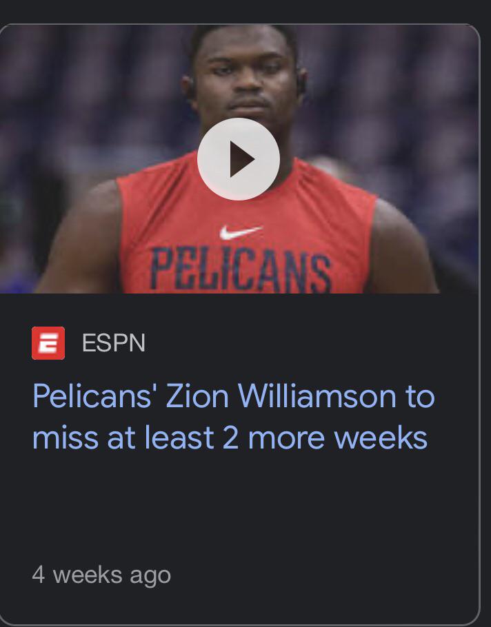 I’m a hell of a lot better this season getting updates every two weeks than I was last season getting updates every 2-3 months. Other Pels fans have researched Z’s injury and have commented it sounds like he’s on schedule for healing. Again, fingers crossed.