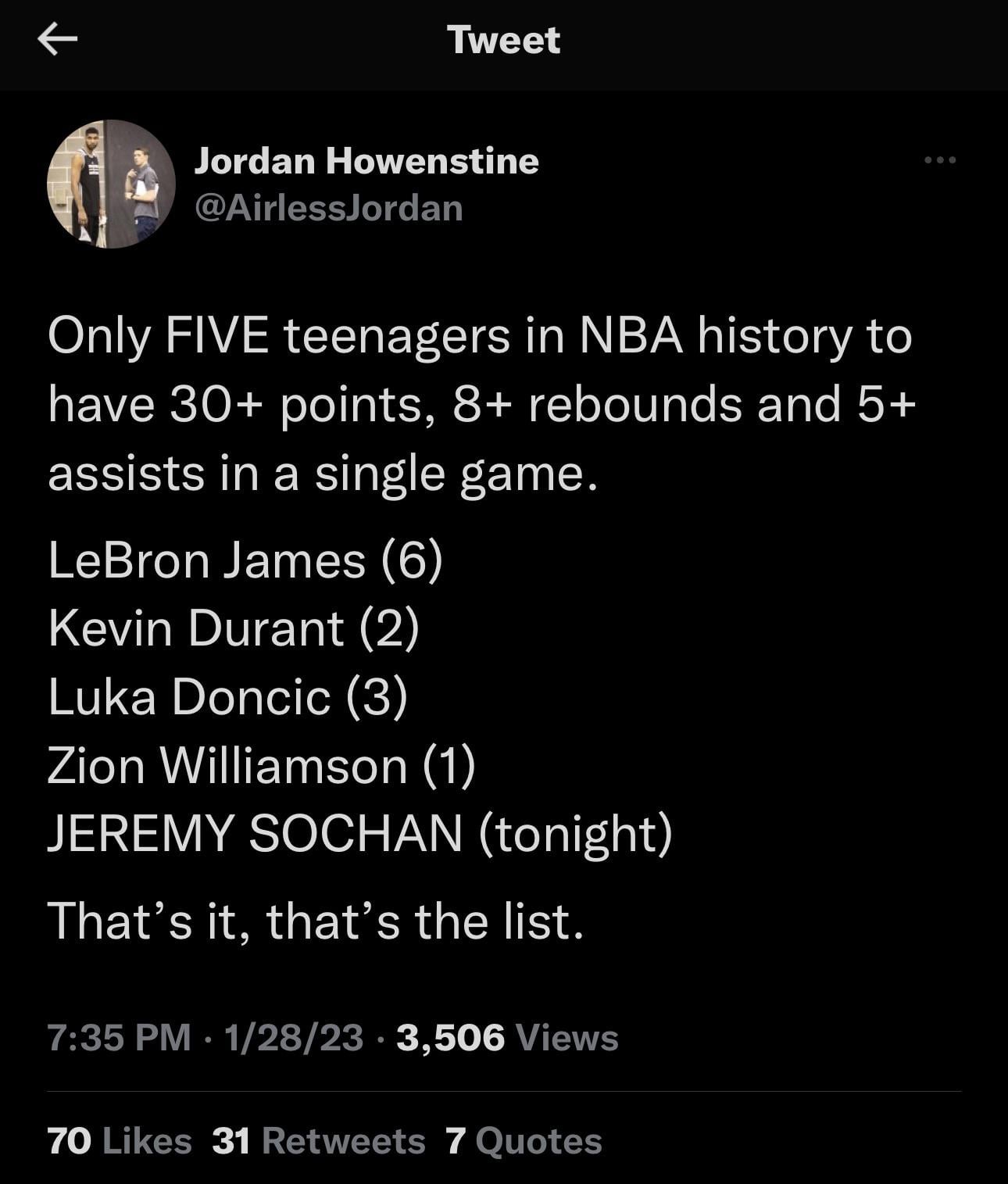 Idk if it’ll ever happen, but he’s got the requisite size, athleticism, handle, and IQ where if his jumper got good he’d be a star