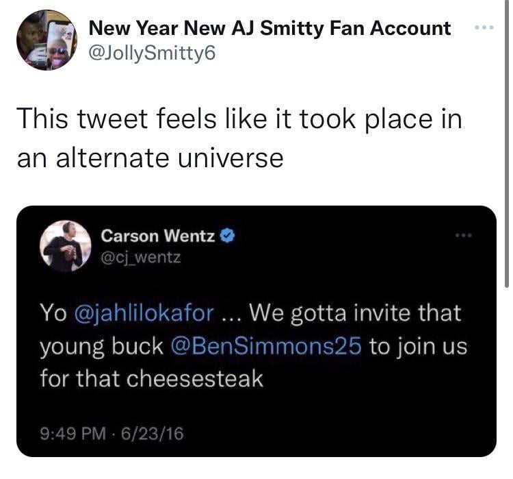 Simpler times? by Class_Act7 Atlantic DivisionEastern ConferencePhiladelphia 76ers Prev Post NBA Finals 2000 February 7, 2023 Next Post Trail Blazers still eyeing trade for Jarred Vanderbilt +Portland Crushed by Giannis, Milwaukee Bucks February 7, 2023 10 Comments LordLucasSixers 3 years ago Cringe… samson_mask 3 years ago I highly doubt Carson even talks like this 😂😂😭😭 AryaRemembers 3 years ago Simpler perhaps but I’ll definitely take the universe where we’re in the Super Bowl and have James Harden larryshomework00 3 years ago Douche chills amenacingballsack 3 years ago All’s well that ends well but we shoulda kept Foles after he won us that chip Successful-Bag2366 3 years ago Meeting of the Loser’s Club 2016. Great_Farm_5716 3 years ago This feel like I’m looking at my middle school photos with that huge chain and Hugo boss sweater vest H00die5zn 3 years ago I cringe extremely hard each and every time I read this god forsaken tweet. EyeAmHim 3 years ago fuck you, fuck you and fuck you too buddy No_Significance_6800 3 years ago Wow lol Write A CommentYou must be logged in to post a comment.