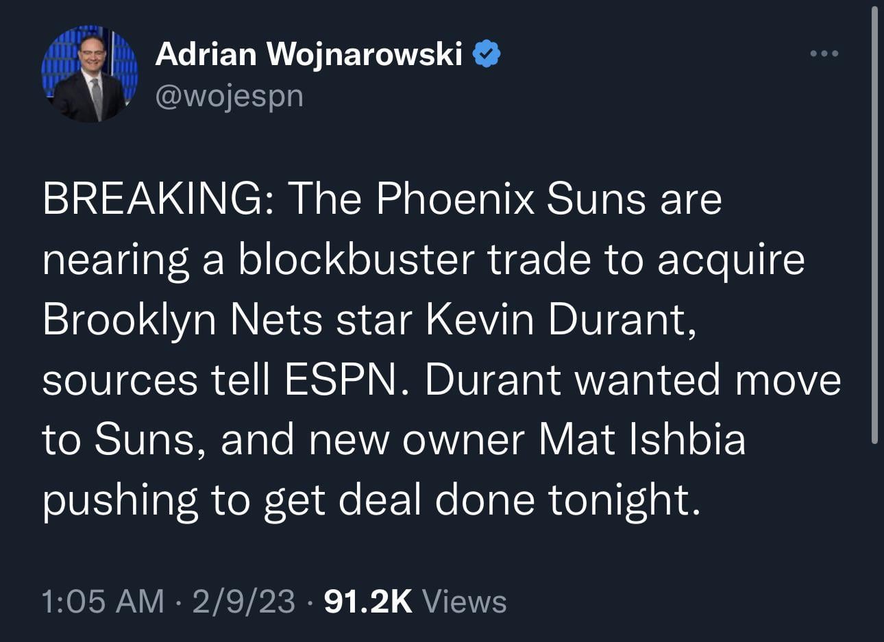 At least this means Jae Crowder is more attainable. KD would’ve been fun but we still would have issues and we would not be good enough short term to win a title imo. Dejounte trade at least is good long-term because he’s so young. We need like some solid vets, and another star player close to around 22-27 years old.