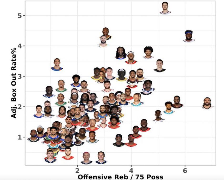 8. This is great shows how hard our centers work for every rebound i also feel like this is part of the scheme too. We attack the paint often either we make the shot or we get a good chance at getting rebounds because of how often we attack the paint, floaters from Jb ju rj iq & hart. I bet julius is also at the top of offensive rebounding % or a graph.
