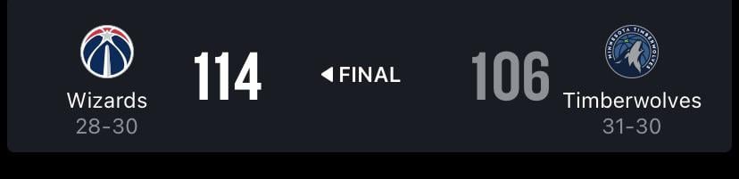 Thank you to our good friends over in Washington. They come back from a large deficit to beat the TWolves and hand them their 30th loss.