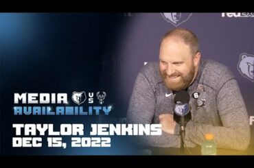 Grizzlies Head Coach Taylor Jenkins speaks to the media after the game against the Bucks at FedExForum. • • •…