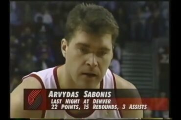 Arvydas Sabonis plays against Charlotte with 22 points, 6 rebounds and 1 assist in 1996