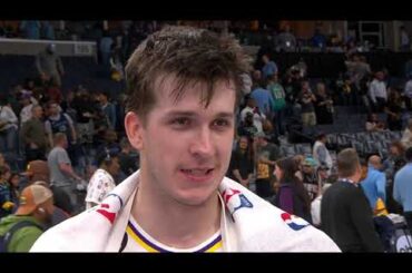 Austin Reaves speaks following the Los Angeles Lakersβ 128-112 win over the Memphis Grizzlies in Game 1 of their first…