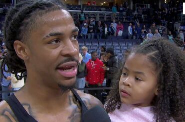 Ja Morant reacts to the Grizzlies win in his first game back in Memphis since returning from suspension, and shares…