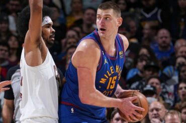 Nikola Jokic speaks after the Nuggets’ double-digit home win over the Cavaliers that featured a second delay for an uneven…