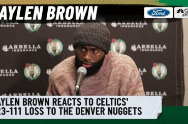 Jaylen Brown speaks following the Boston Celtics’ 123-111 loss to the Denver Nuggets to start their four-game road trip. Presented…
