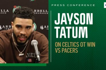 After the Celtics’ 142-138 OT win over the Pacers, Jayson Tatum talks about his rough shooting night, former teammate Aaron…