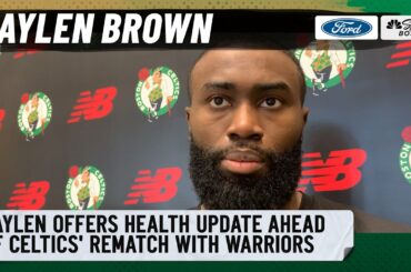 Jaylen Brown speaks following the team’s practice on Wednesday morning and offers an update on his right adductor tightness and…