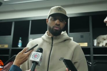 Los Angeles Clippers All Star Forward Paul George speaks to the media following the Clippers 109-102 win over the San…