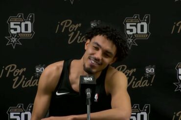 San Antonio Spurs Devin Vassell speaks to the media postgame after the San Antonio Spurs were defeated by the Memphis…