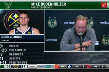 Mike Budenholzer gives his thoughts on Nikola Jokic after the Bucks 129-106 loss to the Nuggets