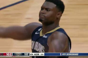 WILD zion sequence as he throws down the double clutch jam, then gets a steal and puts in the fastbreak…