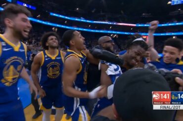 Kevon Looney gets the tip in as time expires to lift the Golden State Warriors over the Atlanta Hawks, 143-141,…