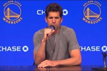 Golden State Warriors general manager Bob Myers meets with reporters on Wednesday afternoon, reacting to the news that Draymond Green…