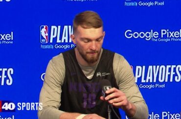 Domantas Sabonis discusses the Kings’ 114-97 loss to the Warriors in Thursday’s Game 3 in San Francisco, Sacramento needing to…