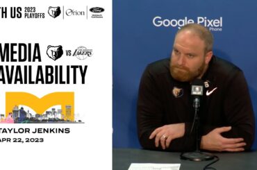 Memphis Grizzlies Head Coach Taylor Jenkins discusses the team’s performance in Game 4 falling short in overtime to the Lakers…
