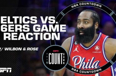 NBA Countdown’s Mike Greenberg, Jalen Rose and Michael Wilbon react to the Boston Celtics’ 114-102 win against the Philadelphia 76ers…