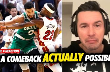 JJ Redick reacts to Game 4 of The Eastern Conference Finals between Jimmy Butler, Bam Adebayo and The Miami Heat…