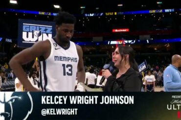 Grizzlies forward Jaren Jackson Jr. talks with Kelcey Wright Johnson after 123-118 win over the Utah Jazz. Jaren Jackson Jr.…
