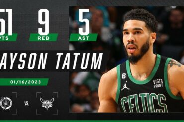 Check out these highlights from Jayson Tatum’s 51-point performance in the Boston Celtics’ 130-118 win over the Charlotte Hornets. Tatum…