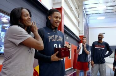 New Orleans Pelicans teammates and staff surprised rookie guard Jordan Hawkins with his 2023 NCAA Championship ring at practice. Hawkins…
