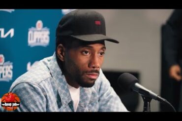 Los Angeles Clippers superstar forward Kawhi Leonard speaks to the media following the Clippers 130-125 loss to the Los Angeles…