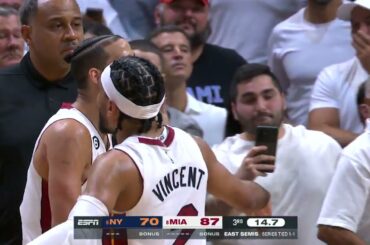Isaiah Hartenstein, Cody Zeller and Caleb Martin are assessed technical fouls after a shoving match under the hoop in Game…