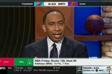 Stephen A. “STRONG” reacts to Bucks knock off Heat for 13th straight win, lose Giannis to injury
