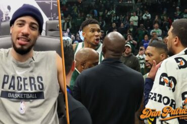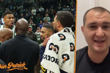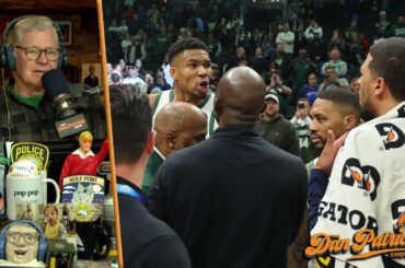 Dan Patrick reacts to the postgame scuffle between Milwaukee Bucks forward Giannis Antetokounmpo and the Indiana Pacers over the game…