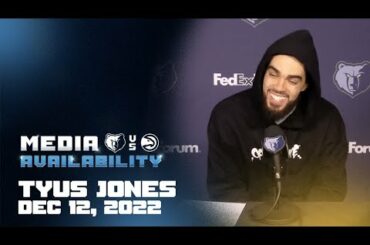Grizzlies guard Tyus Jones speaks to the media following Monday night’s 128-103 win against the Atlanta Hawks. • • •…