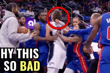 The Orlando Magic and Detroit Pistons got into a BRAWL tonight. Mo Wagner shoves Killian Hayes into bench and starts…